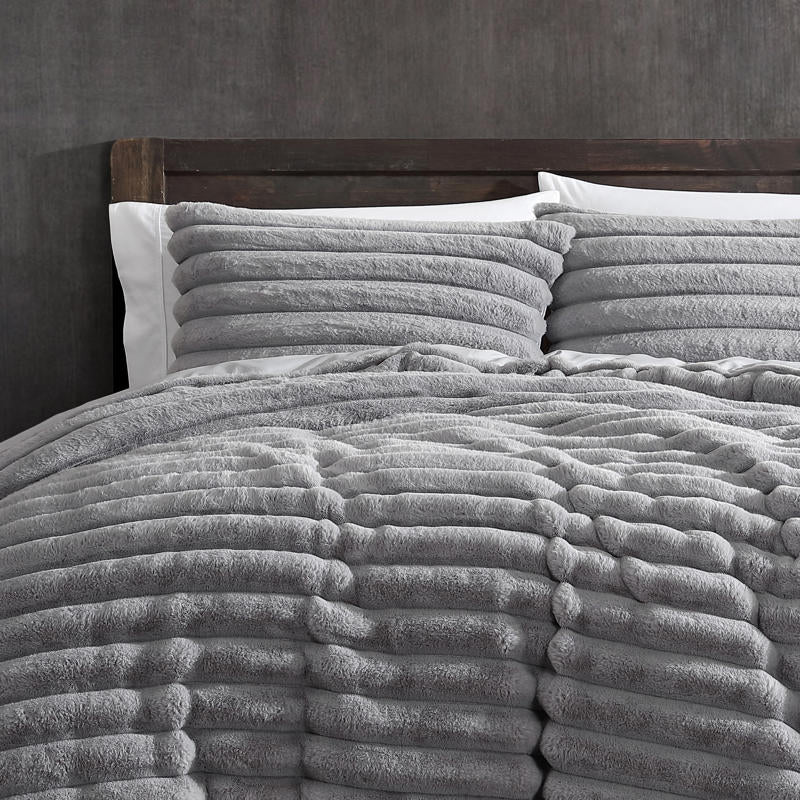 Wrap yourself in the ultimate cosy indulgence. The Ardor Boudoir Jax Smoke Chunky Faux Fur Quilt Cover Set combines plush texture with modern design — perfect for adding warmth and luxury to your winter bedroom.