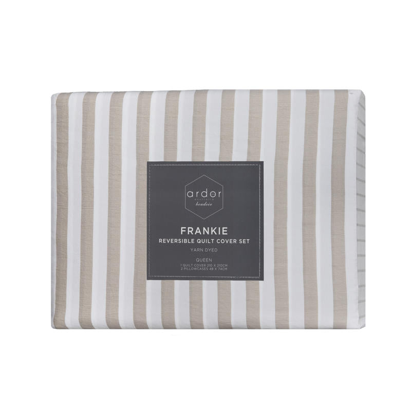The Frankie Stripe Natural Quilt Cover Set is all about effortless elegance. Its reversible design, soothing palette, and soft texture make it a timeless choice for those who love relaxed sophistication and comfortable living.