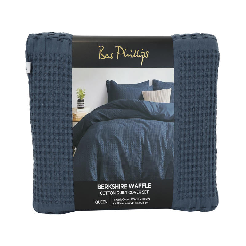 Bring calm and comfort into your space with the Bas Phillips Berkshire Cotton Waffle Blue Haze Quilt Cover Set. Made from breathable cotton with a soft waffle texture, it adds a relaxed, effortless look that feels as good as it looks.