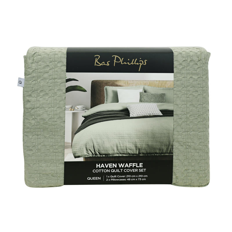 If you love bedding that feels naturally soft and inviting, the Bas Phillips Haven Cotton Waffle Moss Quilt Cover Set is made for you. Its breathable cotton weave and gentle waffle texture create the perfect balance of comfort and effortless style.