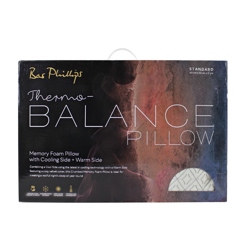 Perfect for anyone looking for a better night's sleep. Choose your preferred side (cool or warm) and align your head and neck for a customised sleeping experience. Improve your sleep quality with the Bas Phillips Thermo Balance Memory Foam Pillow. Order now and transform your bedtime routine for the better!