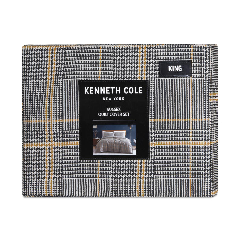 Add a refined, tailored touch to your bedroom with the Kenneth Cole Sussex Khaki/Black Quilt Cover Set. Featuring a timeless check pattern in soft khaki and black tones, it strikes the perfect balance between classic design and modern comfort.