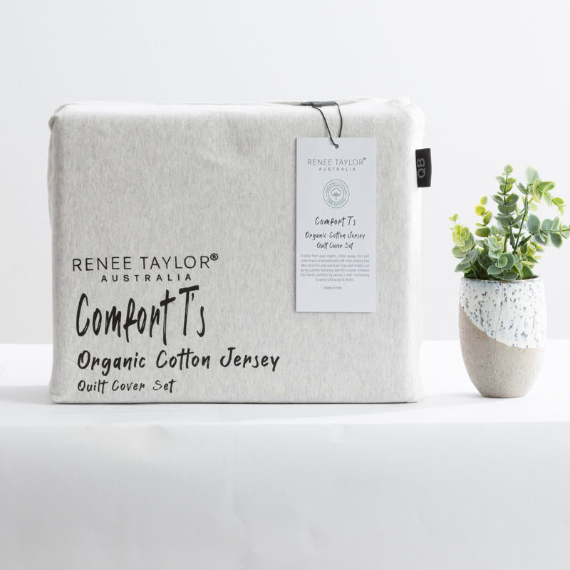 Love that effortless, lived-in feel? This quilt cover set is crafted from 100% organic cotton jersey — the same soft, stretchy fabric as your favourite tee — bringing pure comfort and relaxed style to your bedroom.